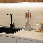 The self-catering facilities feature an equipped kitchen with coffee and tea makers, a refrigerator, and kitchenware. The closest bus stop is Stadiumi Dinamo, which is merely a 5-minute stroll away.